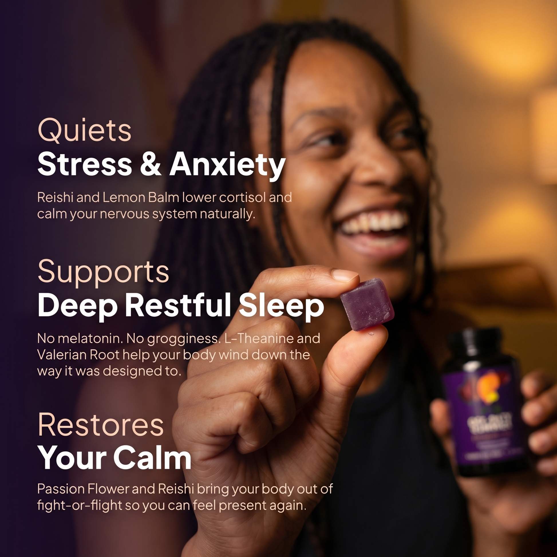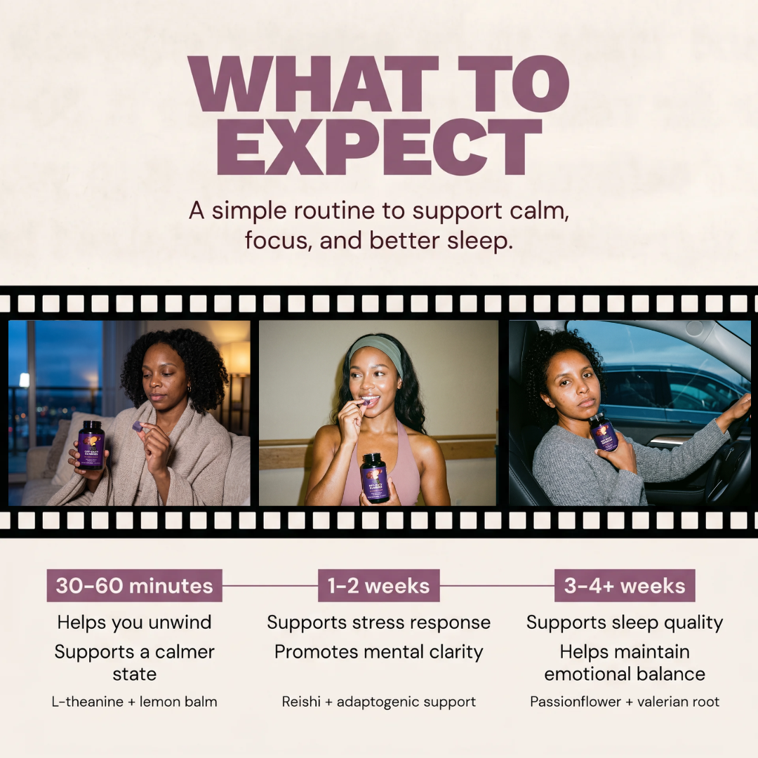 Within 30 minutes your thoughts slow down. Not because you're sedated, because your nervous system finally got the signal it was waiting for. By week two you wake up differently. Not just rested. Present. Like a version of yourself you forgot existed. No grogginess. No dependency. Just your body doing what it was always designed to do, when it's finally given permission to stop.